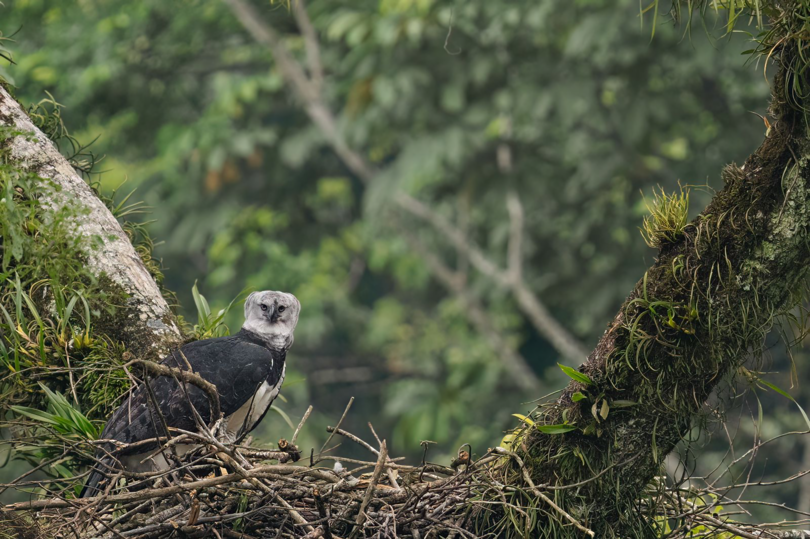 La arpía depende casi exclusivamente de bosques primarios o selvas muy bien conservadas. Necesita árboles emergentes de gran tamaño, como ceibas u otras especies gigantes, para construir sus nidos. Cuando el bosque se fragmenta o se degrada, aunque el paisaje aún parezca intacto, el hábitat deja de ser adecuado para la especie.