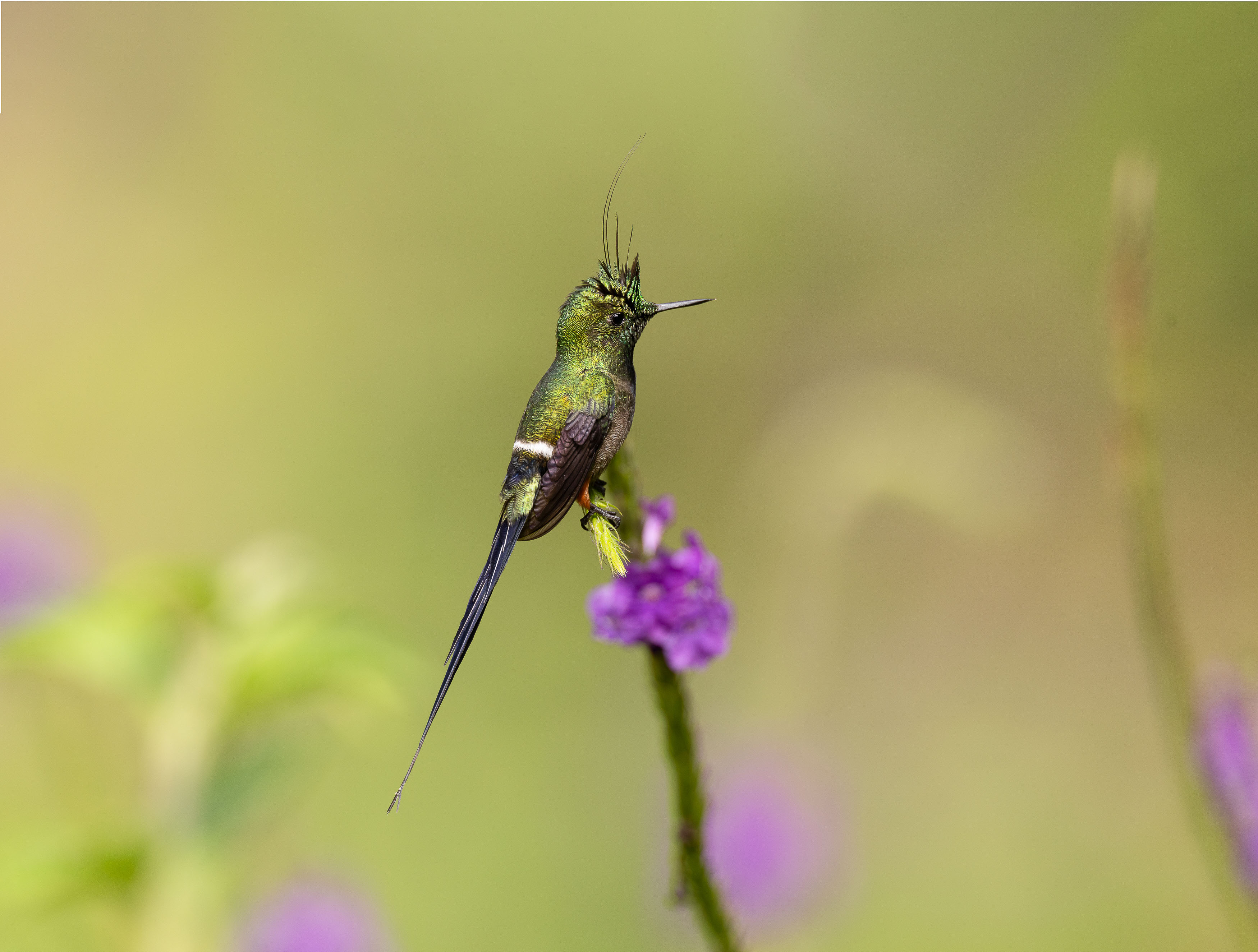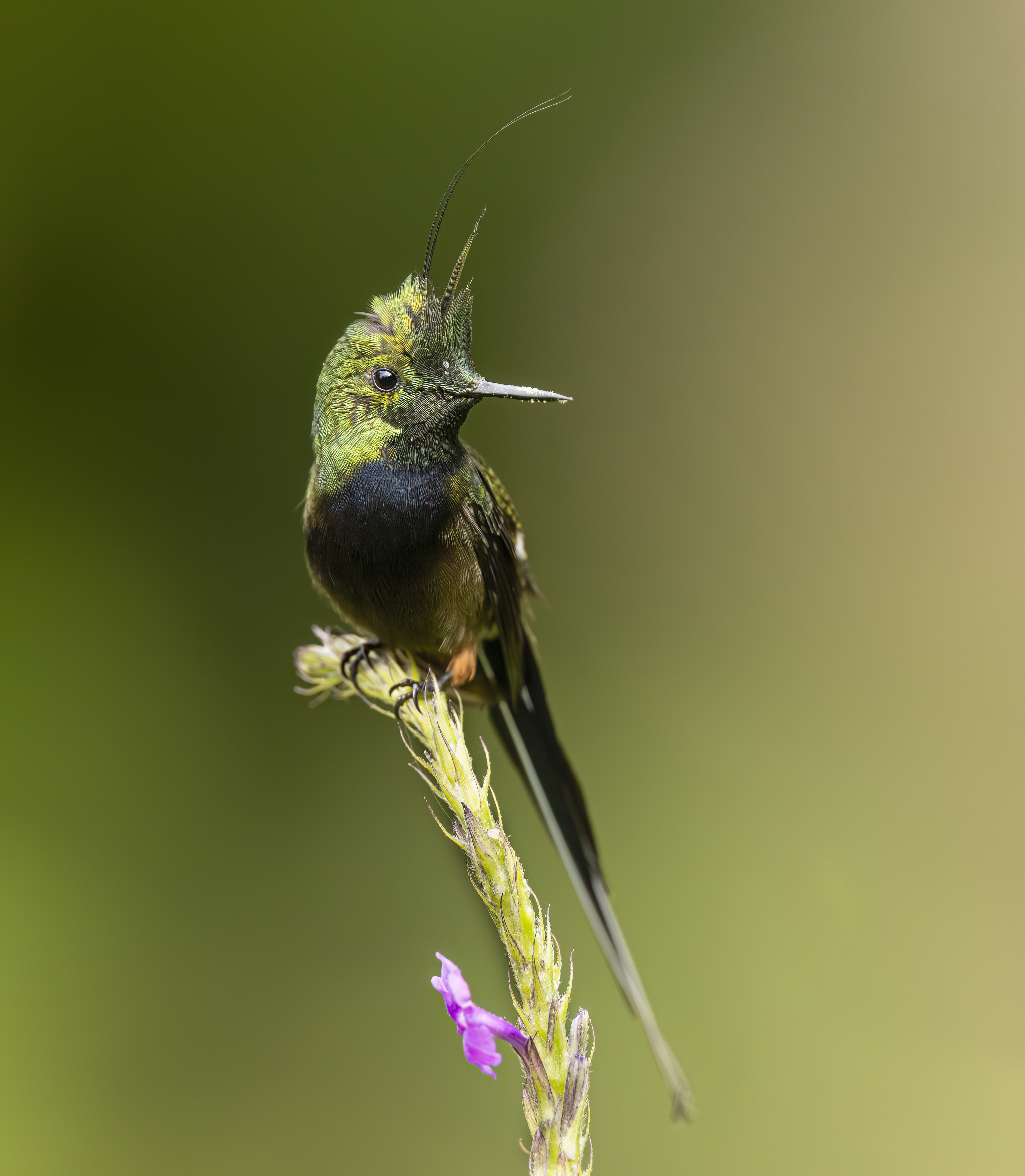 Dedicaremos el día a fotografiar aves y orquídeas, enfocándonos especialmente en encontrar una de las estrellas de la zona: el Rufous-crested Coquette. Esta pequeña y ornamentada especie visita con frecuencia la reserva, donde es posible observar machos, hembras y juveniles libando entre las flores.